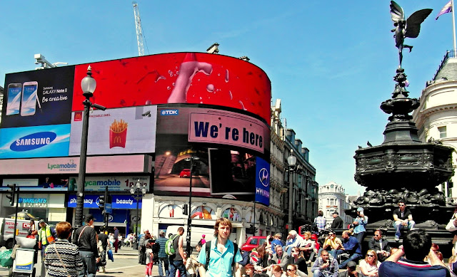 I am wearing a red leather jacket ( love it!), a black pair of leggings, trainers and a spacious bag. These pics were taken around the Piccadilly Circus area so today I also added some extra photos of this charming but always very busy part of London.